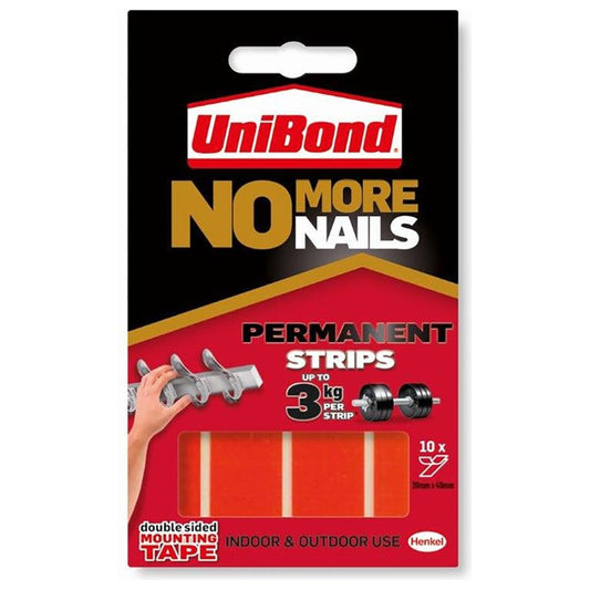 UniBond No More Nails Permanent Strips 19mm x 5cm (10 Strips)