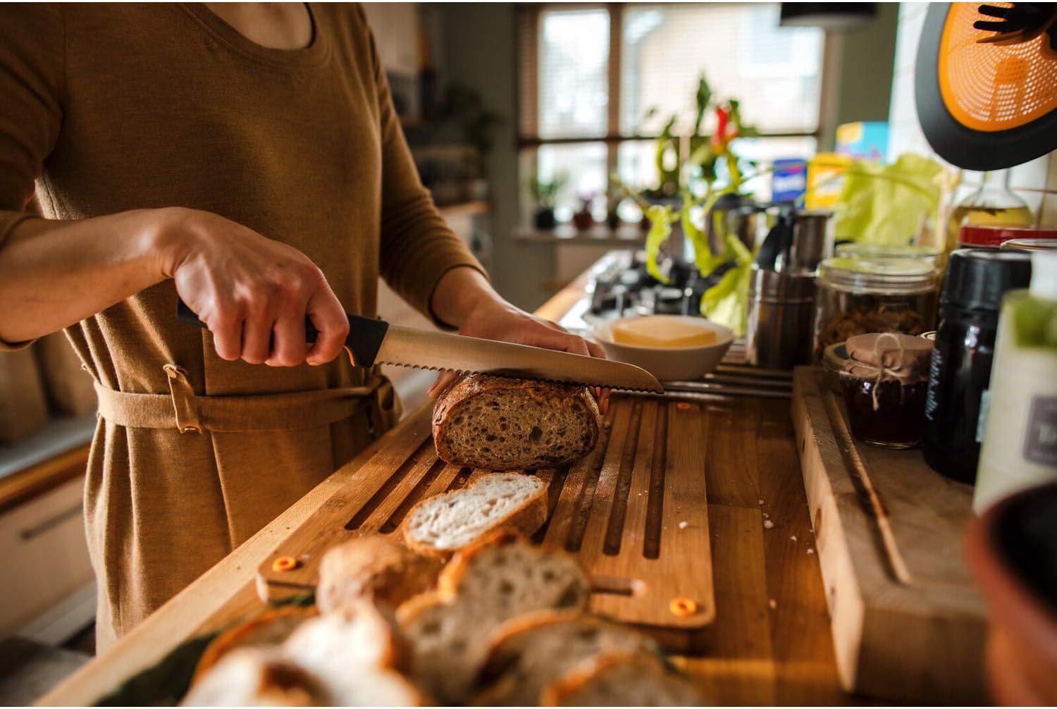 The Fiskars Bread Knife features a serrated edge, which allows it to effortlessly cut through crusty and soft bread without crushing or tearing. Standard knives with smooth edges often struggle to make clean cuts on bread.