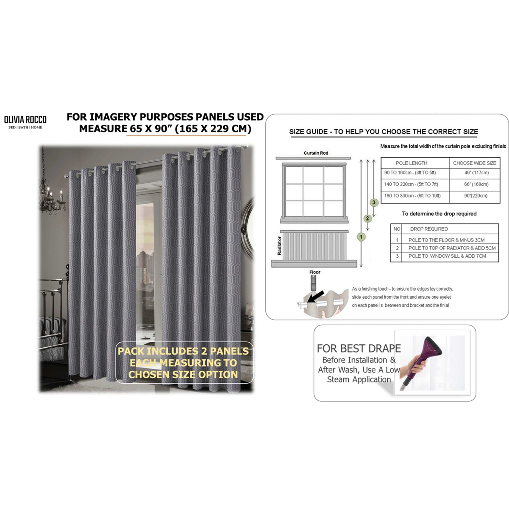 Description: The OLIVIA ROCCO curtains feature a stunning geometric jacquard design that adds a modern touch to your interiors. The intricate pattern is woven into the fabric, providing a rich texture and visual interest.