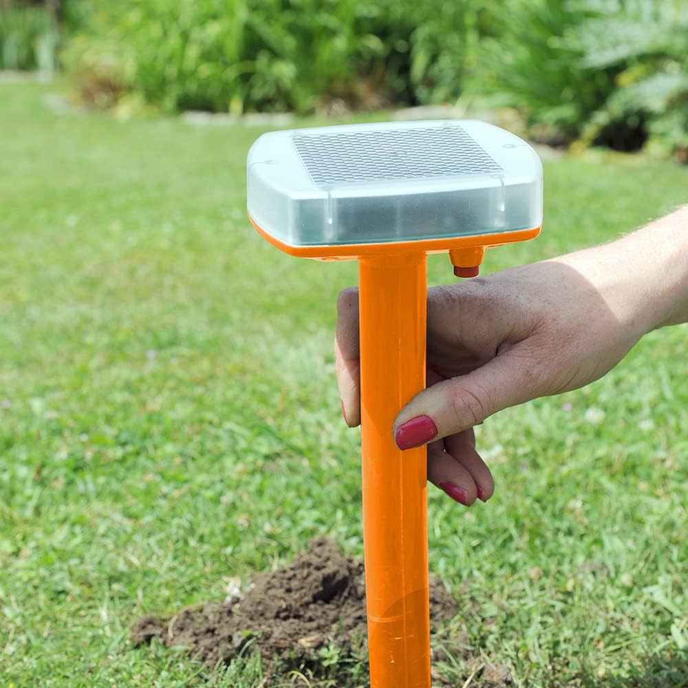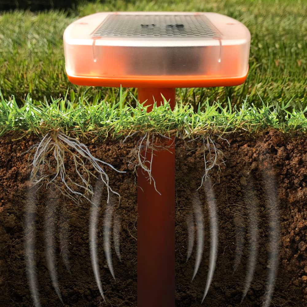 Sonic Pulse & Vibration – Emits disruptive signals every 50 seconds, discouraging moles from settling in the area.