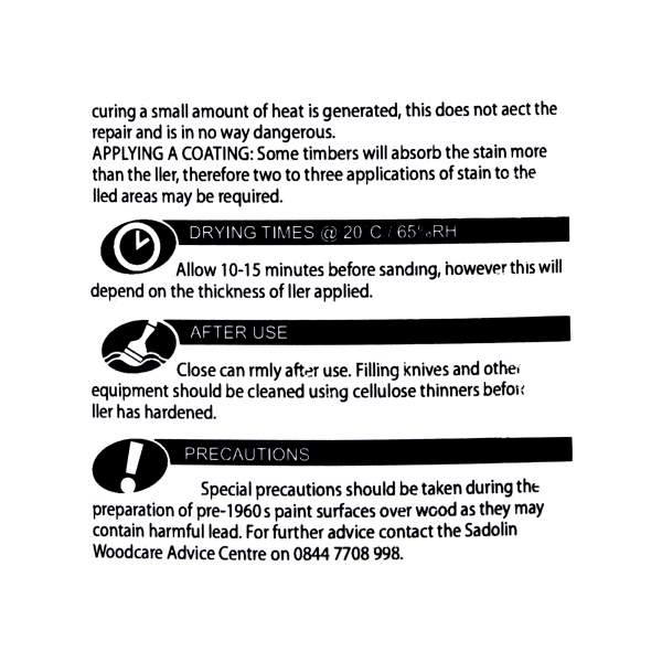 Perfect for use before painting, staining, or varnishing, this woodfiller sets hard and can be easily sanded, nailed, or screwed once cured. Ideal for use on windows, doors, skirting boards, and more.