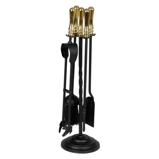 Hearth & Home Black Companion Set With Round Base / Brass Handles 5 Piece 19"