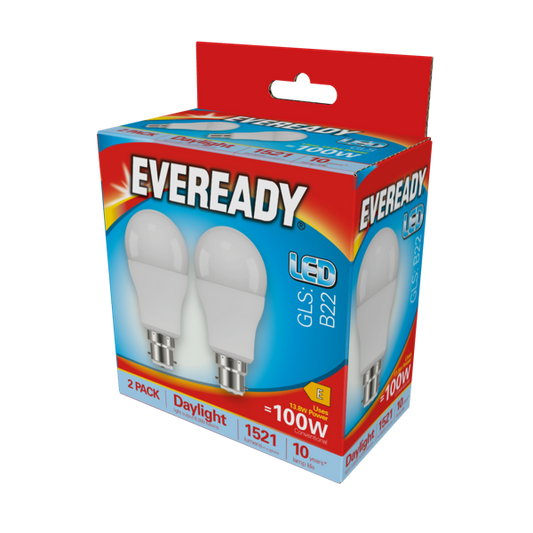 Eveready LED GLS BC B22 6500k Daylight Pack 2