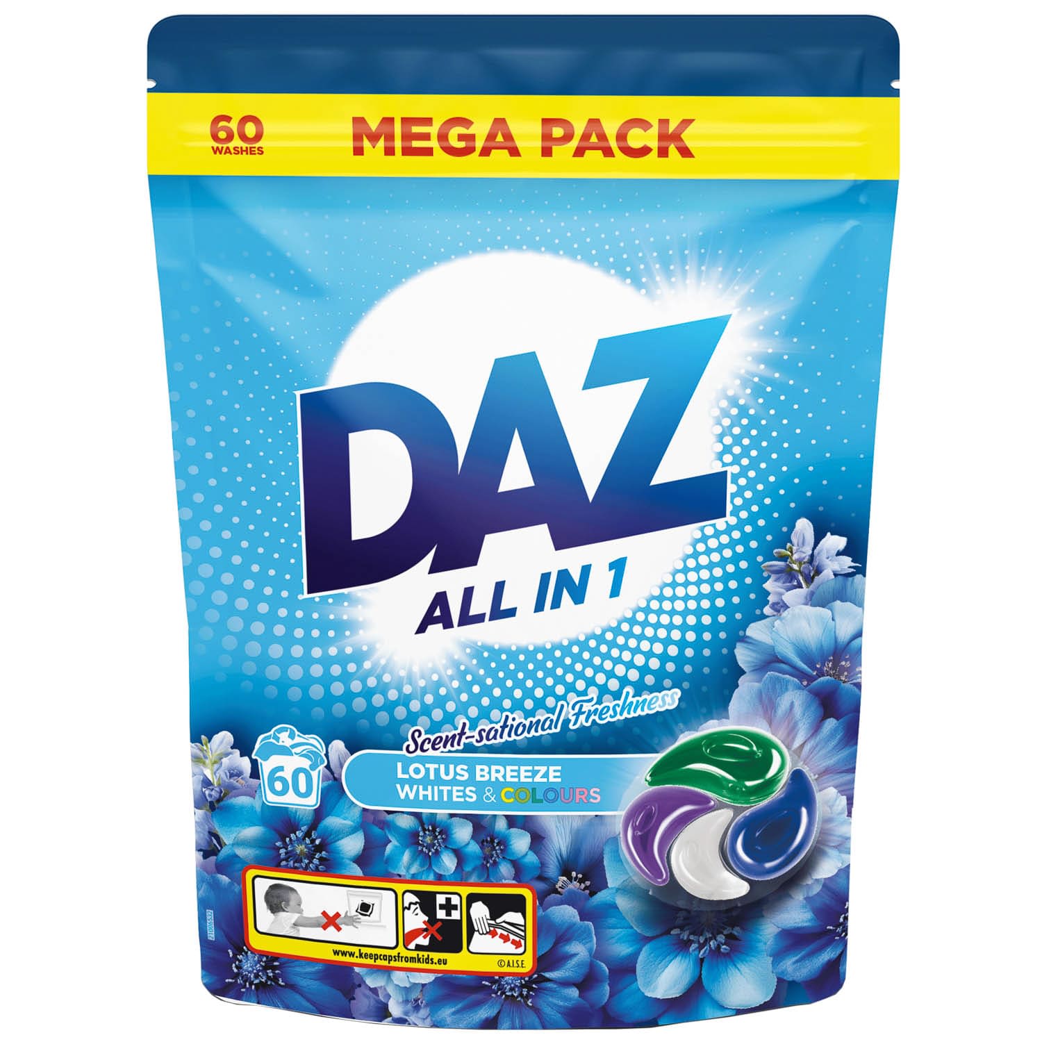 Daz Laundry Pods with Lotus Breeze fragrance deliver powerful cleaning in a convenient, pre-measured format. Each pod contains a concentrated formula designed to effectively lift stains, brighten whites, and leave clothes with a long-lasting, fresh floral scent. The Lotus Breeze fragrance provides a clean, airy aroma that refreshes your laundry with every wash.