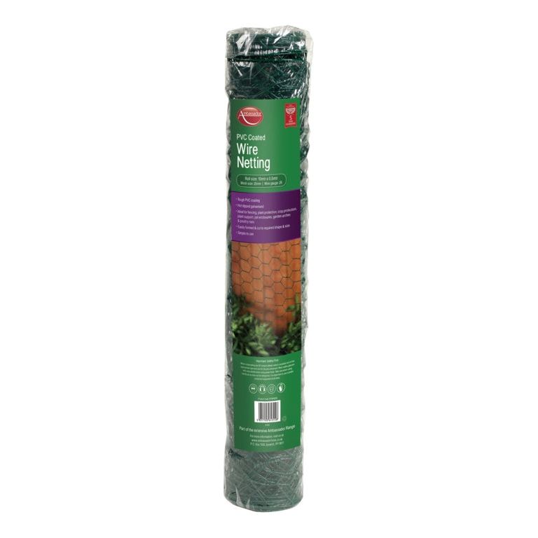 The Ambassador PVC Coated Wire Netting is a durable and versatile solution for protecting plants, creating enclosures, and supporting climbing plants in your garden. Constructed with a strong galvanized steel core and coated with weather-resistant PVC, this netting offers excellent strength and longevity. Its flexible yet sturdy design makes it suitable for various gardening, agricultural, and DIY applications, providing reliable protection and support year-round.