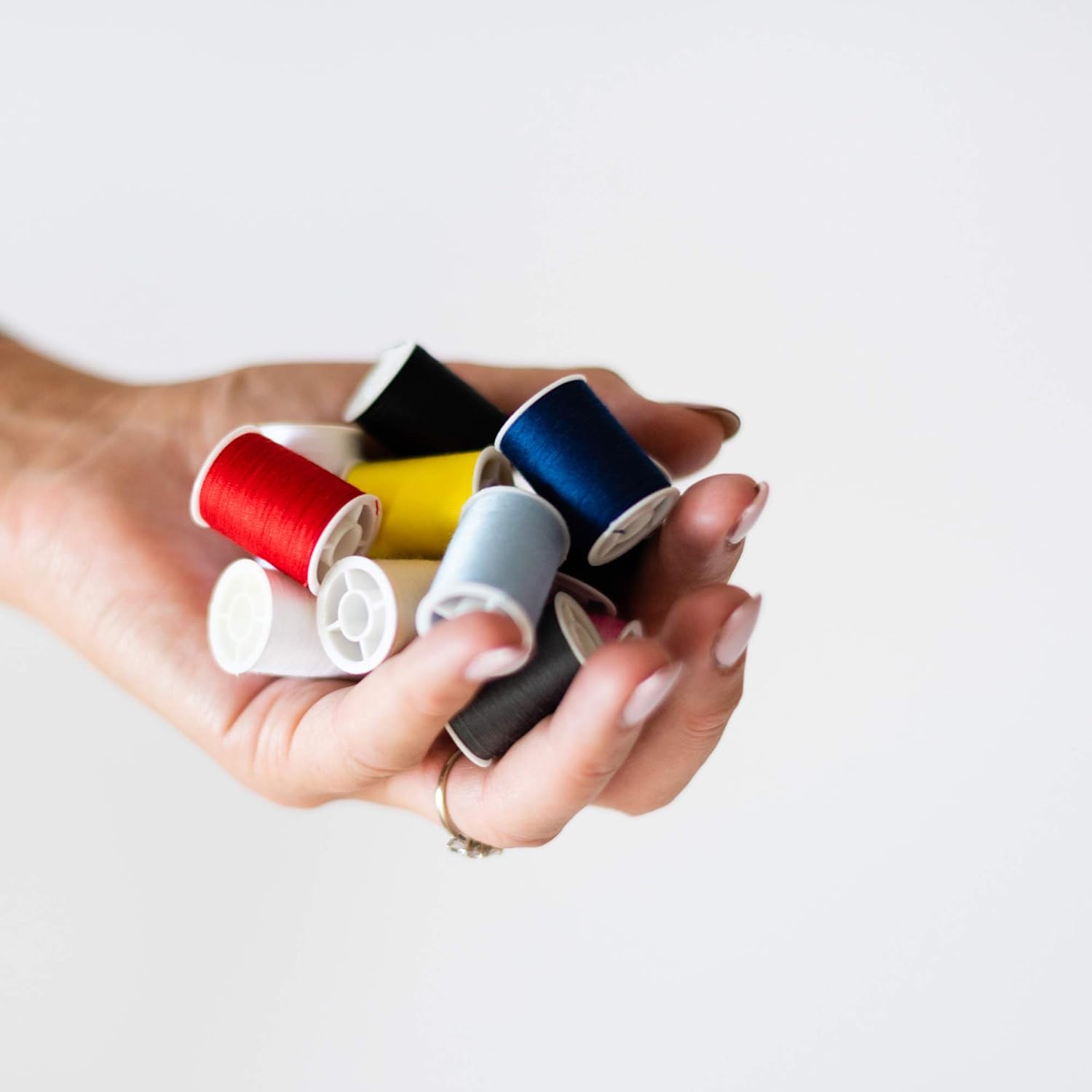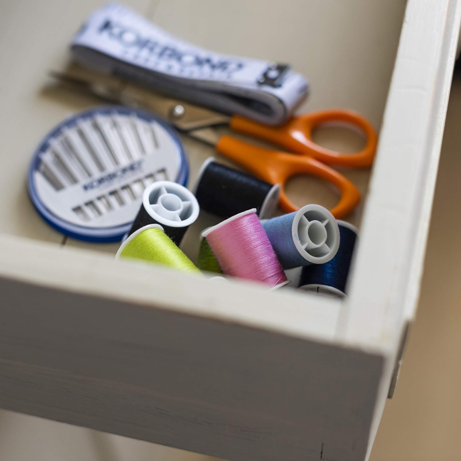 The threads are neatly wound onto spools, making them easy to store and organize. The compact packaging helps keep your sewing area tidy and allows you to easily select the correct colour when needed.