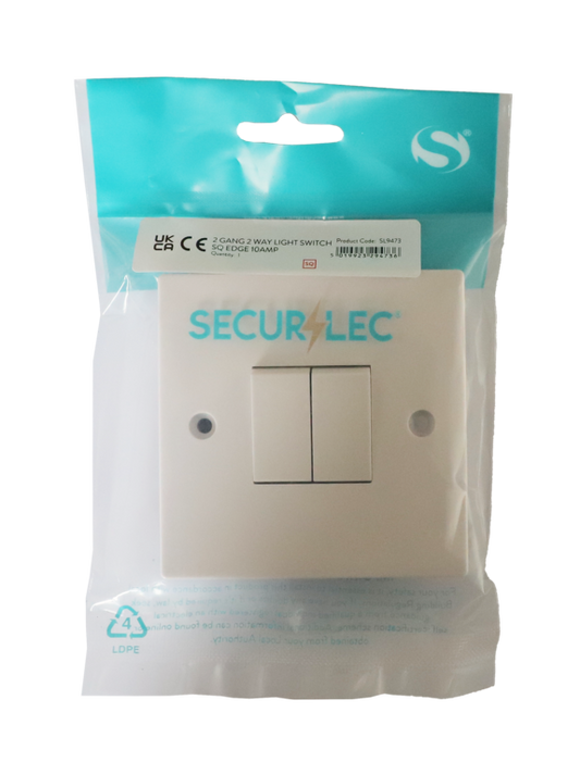 Securlec Square 2 Gang 2 Way Light Switch Square Edge