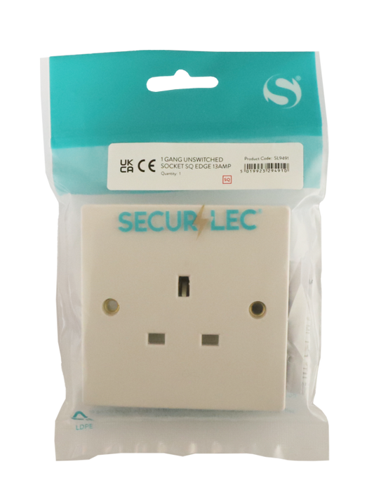 Securlec Square 1 Gang Unswitched Fused Spur Square Edge