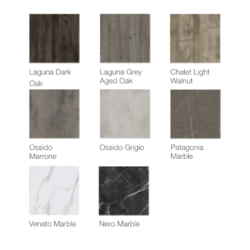 Choose from a range of unique finishes, from natural wood tones to dramatic marble-effect designs.