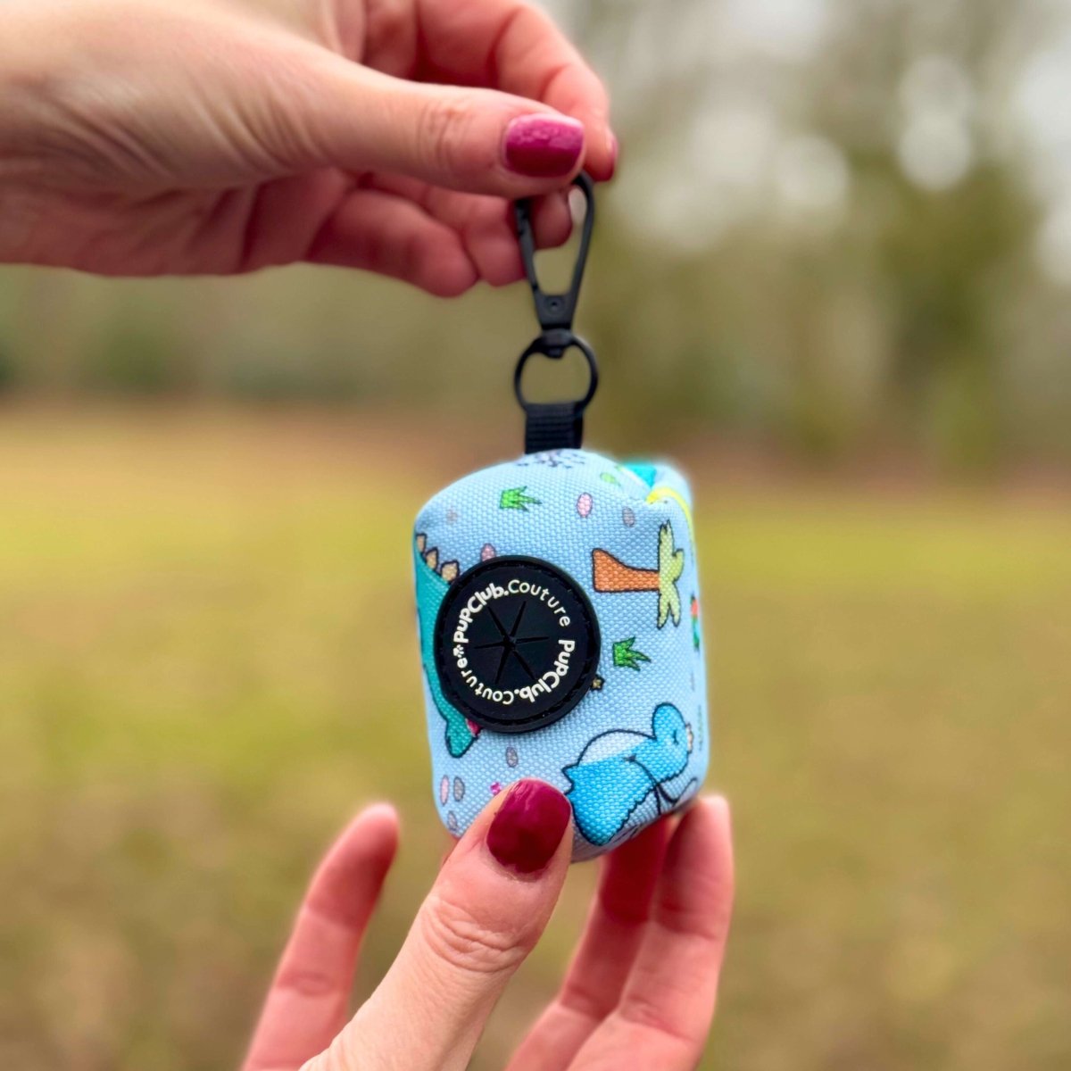 Cleanups don't need to be boring with our matching Poop Bag Holders, designed to complement you and your dogs look! Our 'Jurassic Party' pattern - A super cute Dino design featuring playful critters on a blue background - get ready for adventure with this super cute design.