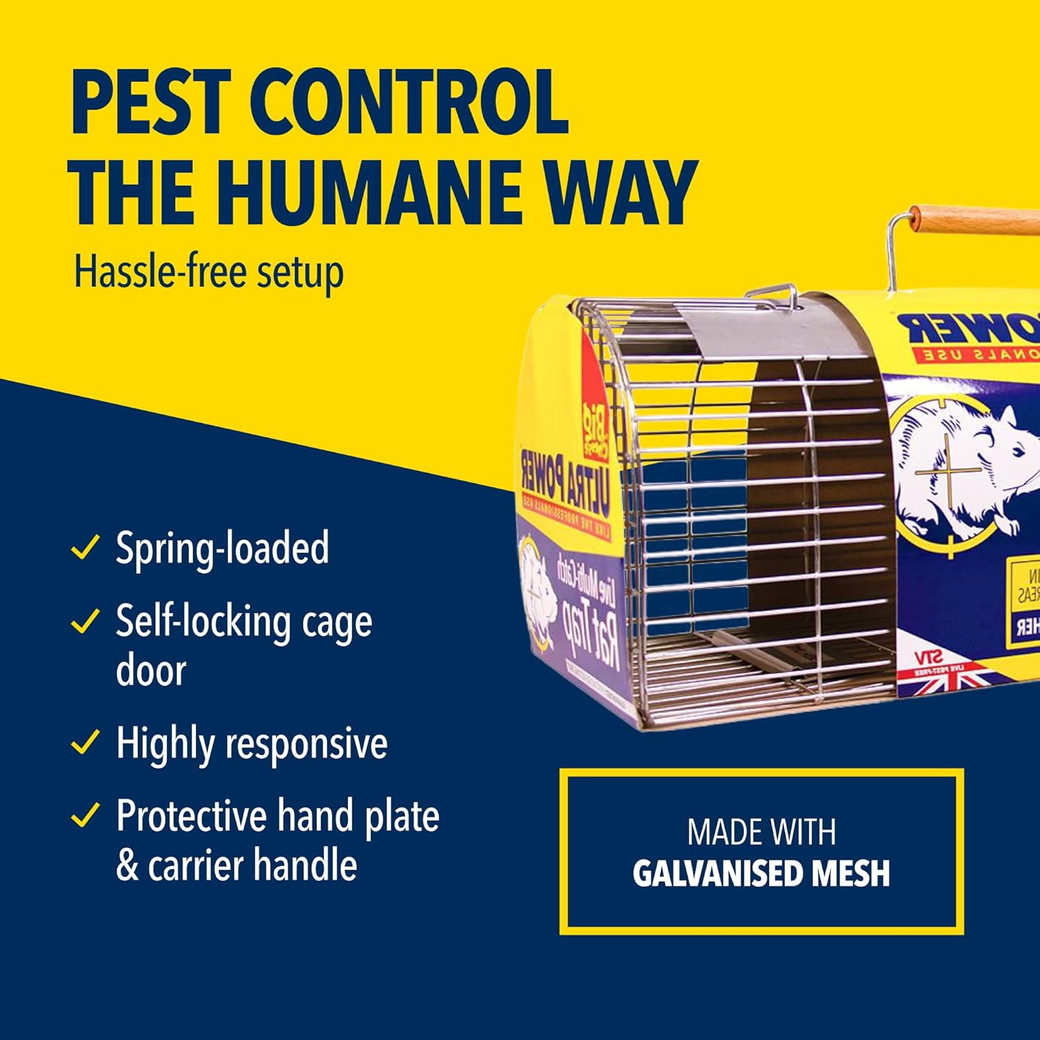 The Big Cheese Ultra Power Live Multi Catch Rat Trap is a highly effective and humane solution for catching multiple rats in a single setting. Designed with a durable galvanised mesh construction and a protective hand plate, this trap ensures safe and easy handling while delivering professional-grade results.