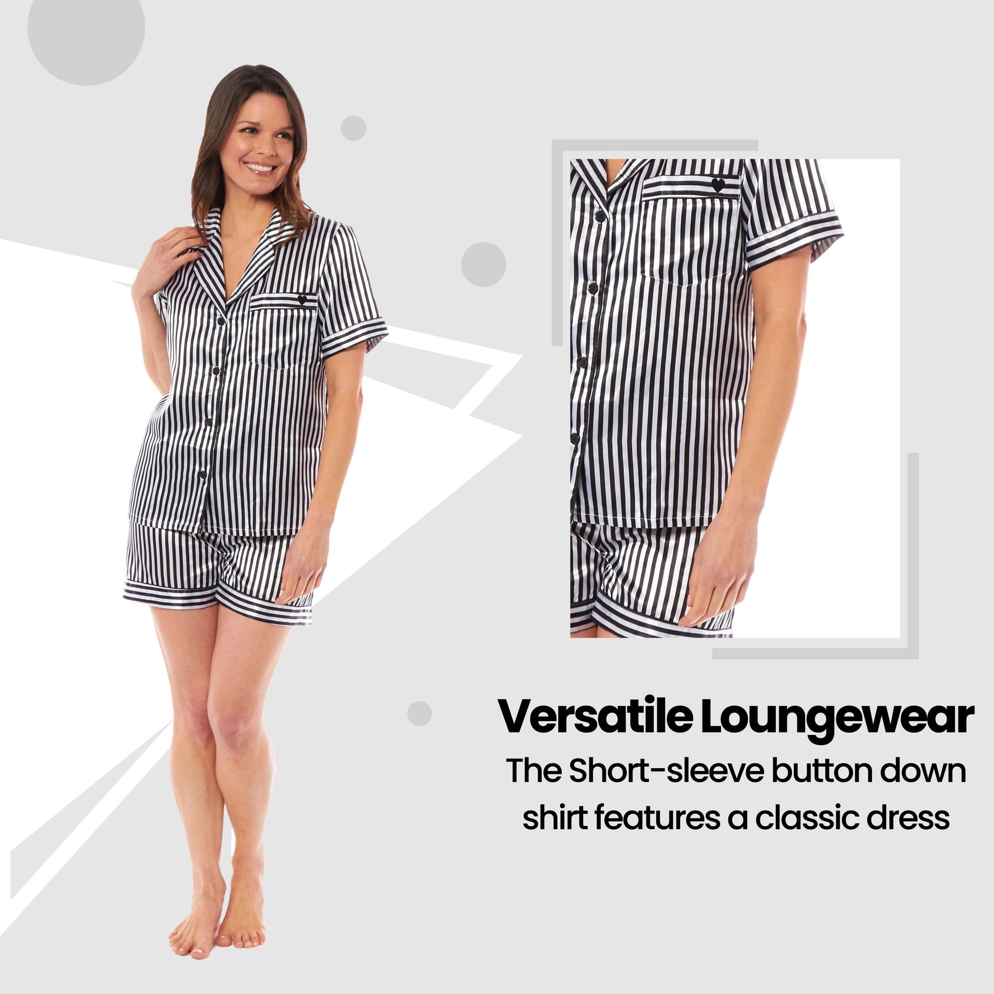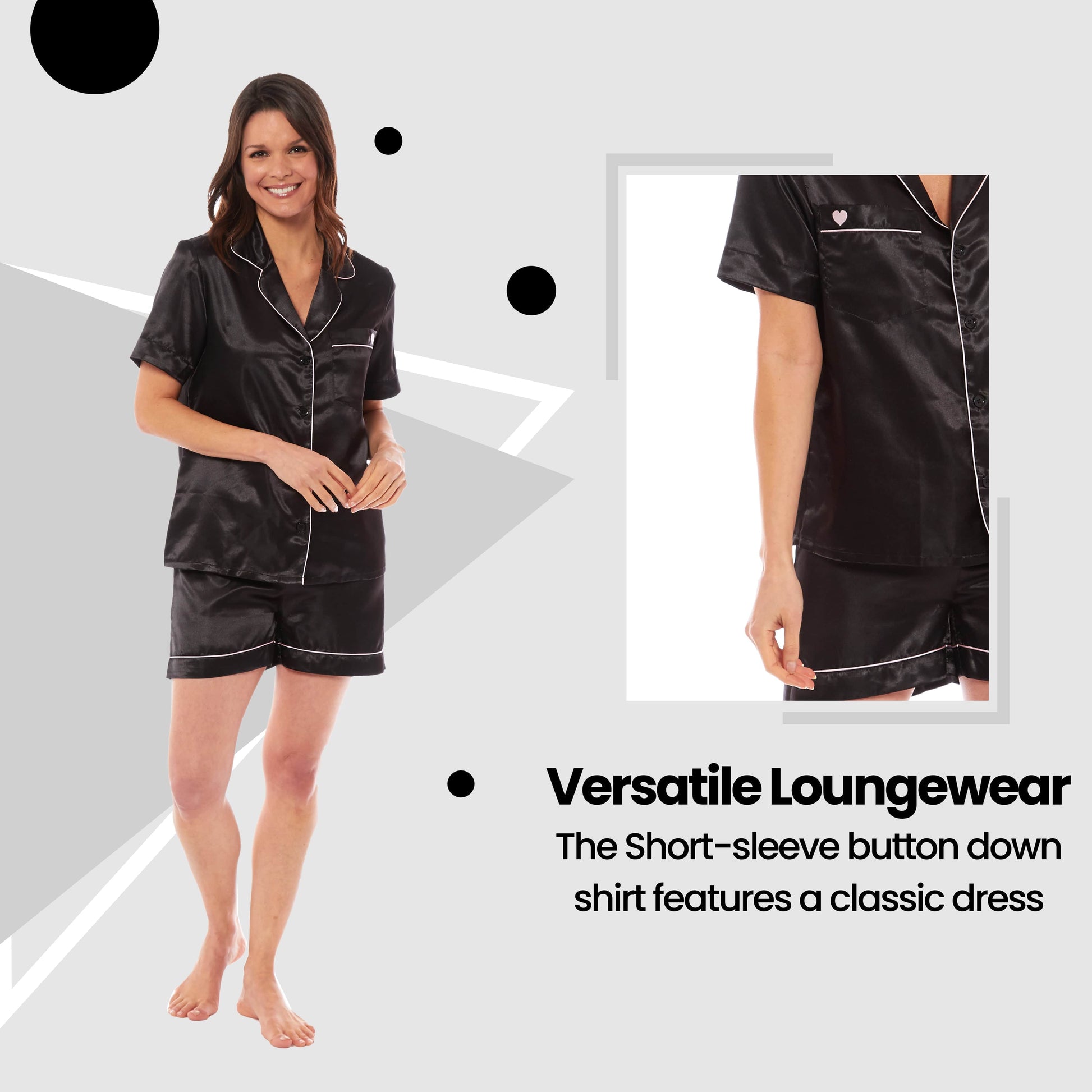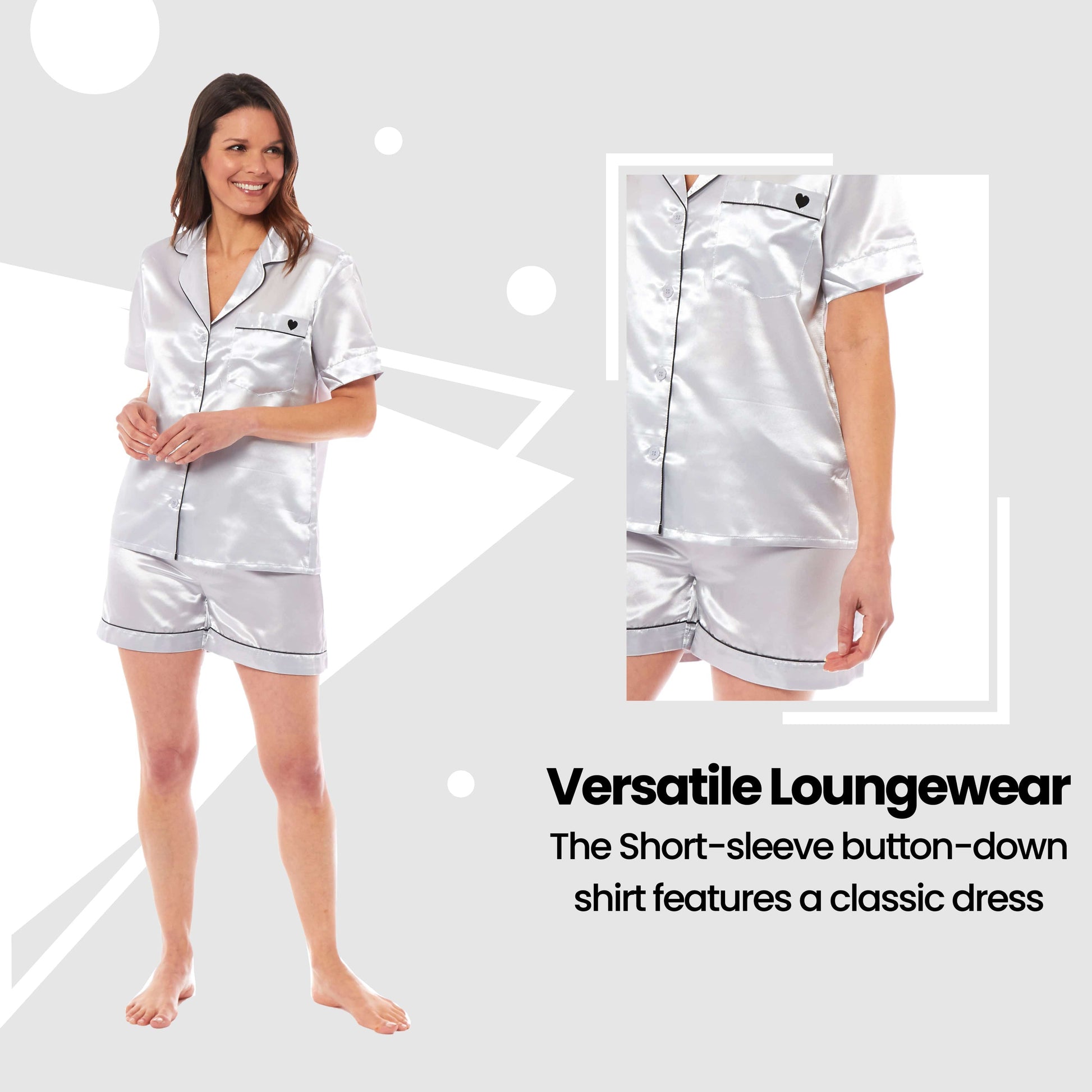 Women's Satin Silk Short Pyjama Set: Ladies Everyday Loungewear, Cosy Nightwear PJs