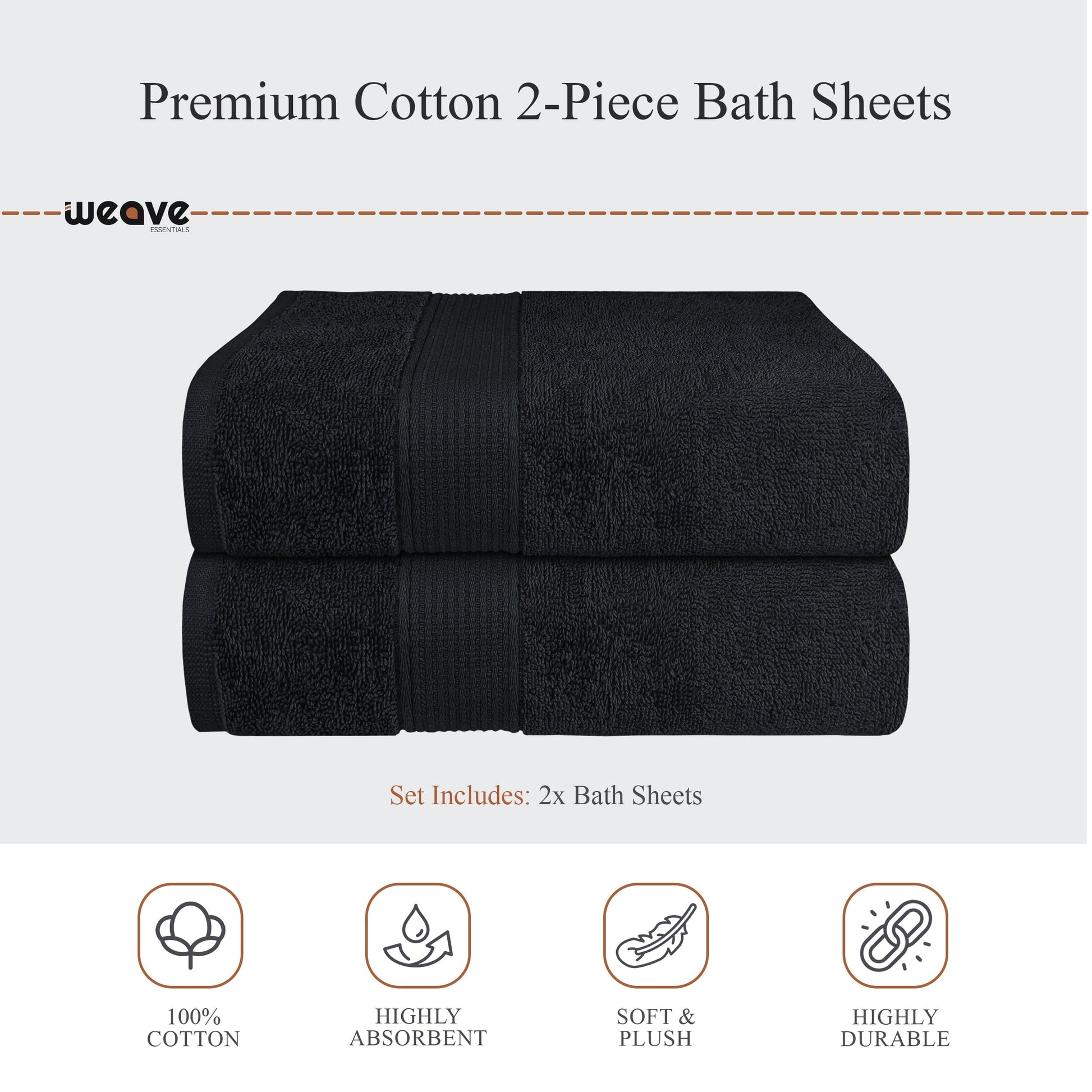 • 2-Pack Bath Sheets: Each measuring 90 x 140 cm – perfect for extra comfort and full-body coverage.
