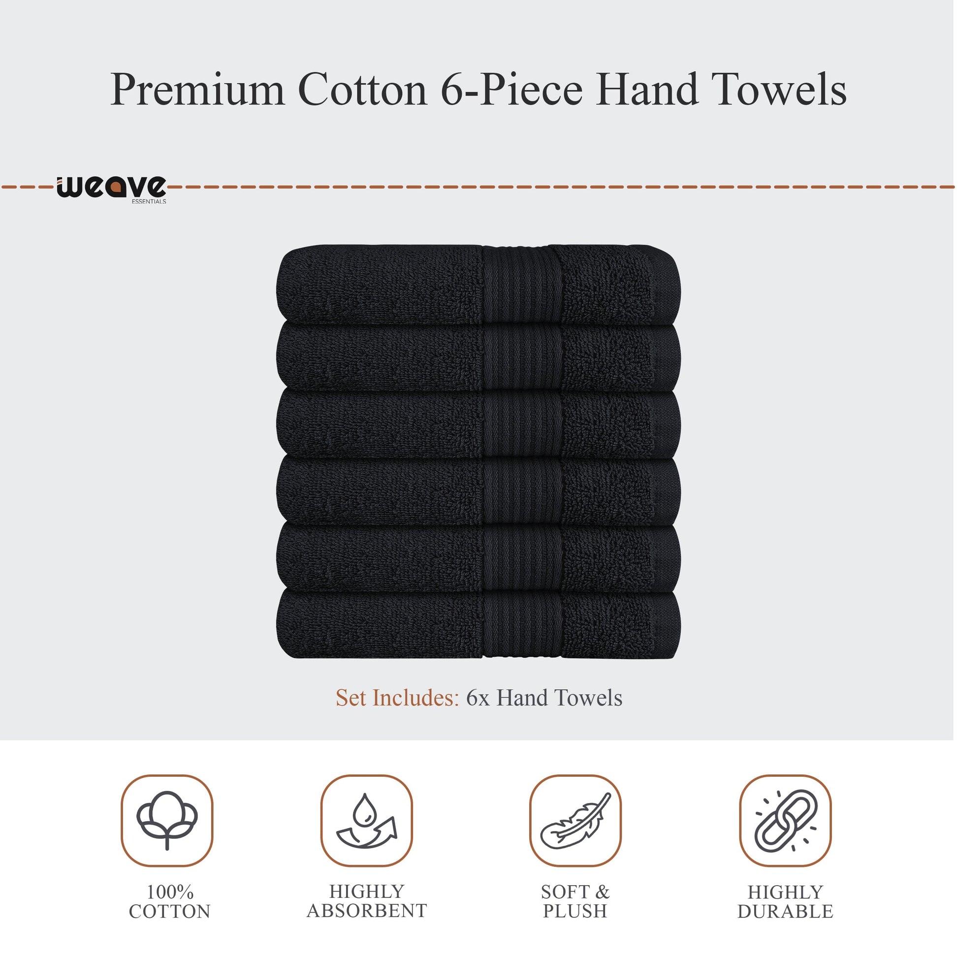 • 6-Pack Hand Towels: Each measuring 50 x 70 cm – ideal for hand drying and guests.