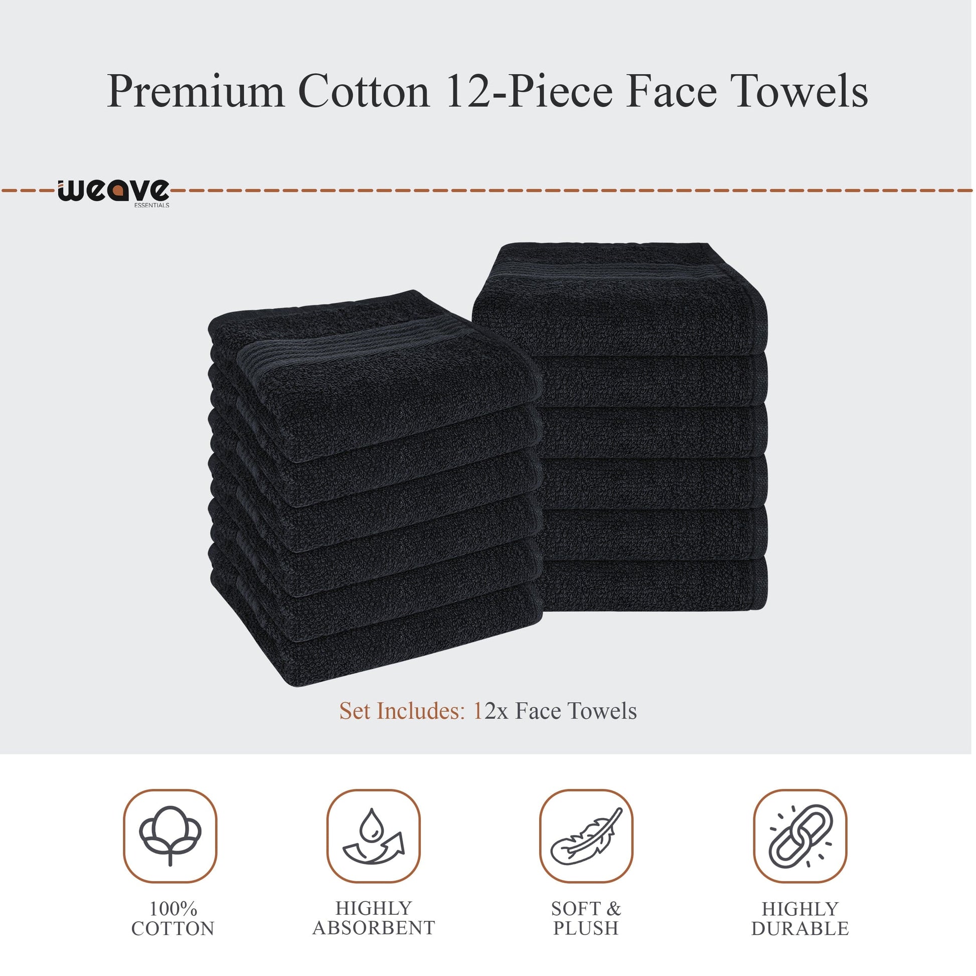 • 12-Pack Face Cloths: Each measuring 30 x 30 cm – perfect for skincare, face washing, or utility tasks.