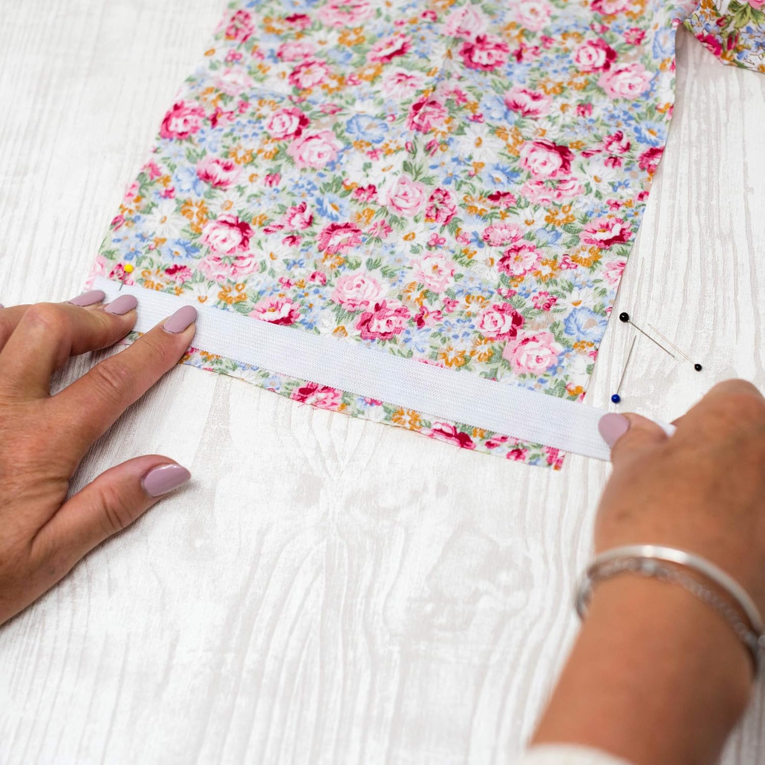The medium width is ideal for a broad range of applications including waistbands, skirts, pyjamas, trousers, sleeves, and bags.