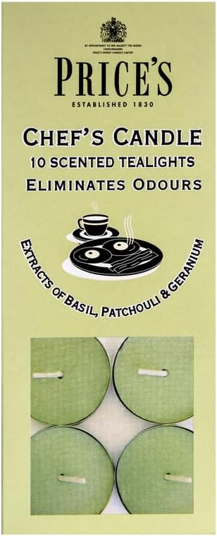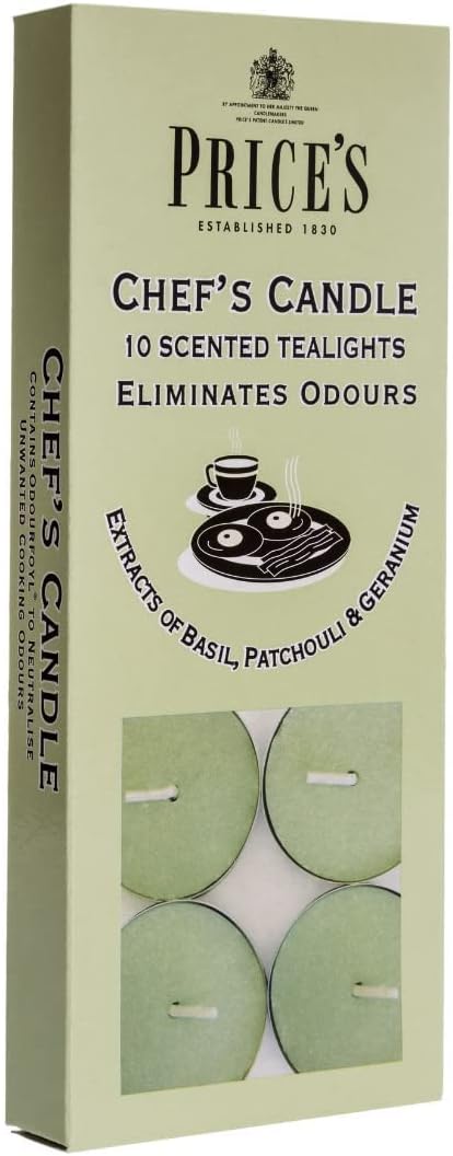 Neutralise lingering kitchen odours with Price's Candles Chef's Tealights—specially formulated to tackle cooking smells with ease.