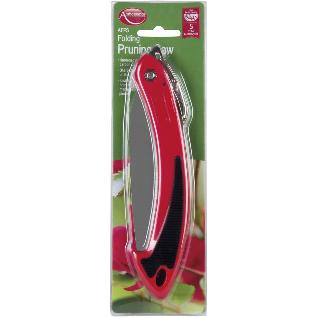 The Ambassador Folding Pruning Saw is a compact, durable, and high-performance cutting tool, perfect for garden maintenance, landscaping, and outdoor tasks. Designed with a hardened and tempered carbon steel blade, this saw ensures sharp, precise cutting for trimming branches, pruning trees, and general woodwork. Its folding design makes it a convenient, pocket-sized tool that is easy to carry and store.