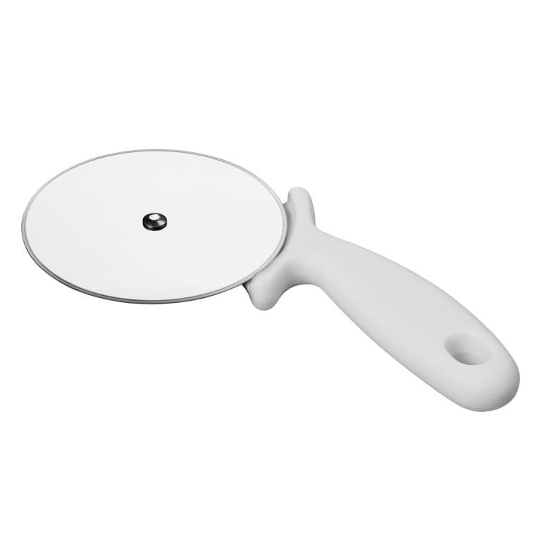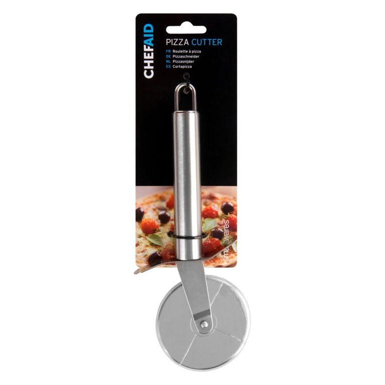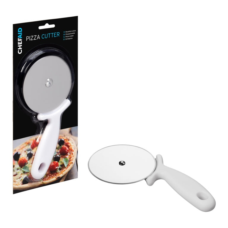 The Chef Aid Pizza Cutter is a must-have kitchen tool designed for effortless slicing of pizzas, flatbreads, and more. Featuring a stainless steel cutting wheel, this durable and sharp cutter glides through crusts with precision, ensuring clean, even slices every time. Its ergonomic handle with a thumb rest provides a comfortable grip and enhanced safety, while the hanging loop allows for convenient storage when not in use.