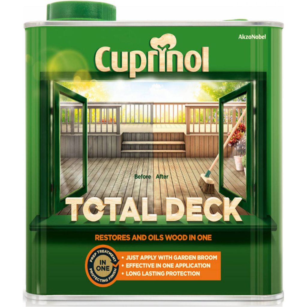 Its unique double action formulation restores and protects grey and weathered wood. Cuprinol Total Deck is easily applied with a garden broom.