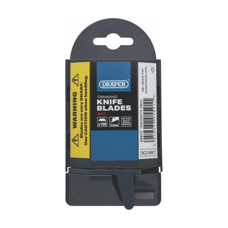 - Reversible polished steel blades with accurately ground cutting edge. Packed in plastic dispenser. Suitable for use with Draper Trimming Knives Stock Nos. 02888, 02889, 02890, 02895, 02896, 08684, 11529, 19961, 31484, 54882, 54883, 55059, 66274, 69020, 71192 and 75285. Also fits Draper Window Scrapers Stock Nos. 13470 and 39004. Display packed.