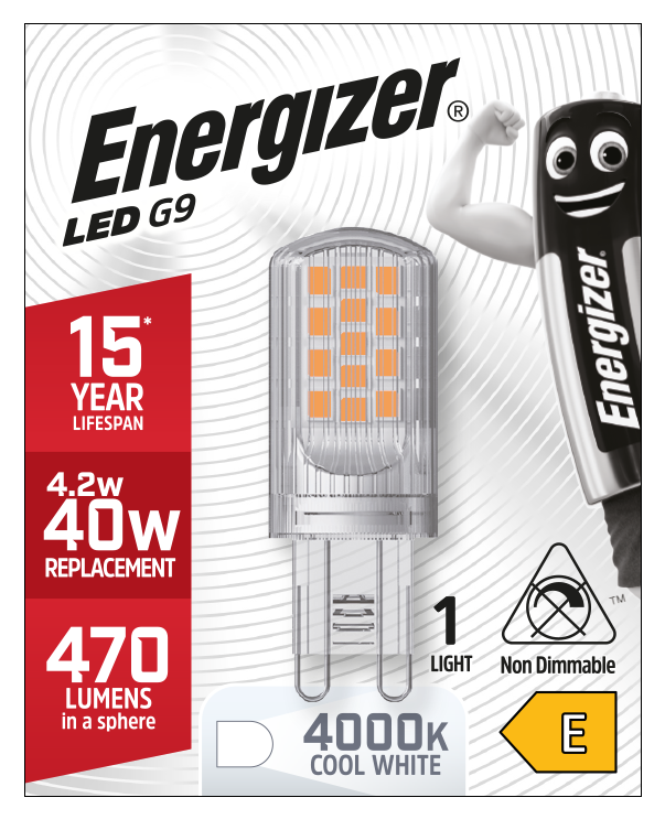 Energizer LED G9 Bulb – Dimmable (4.2W, 470lm) – Available in 2700K, 4000K & 6500K