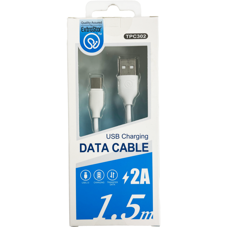The Extrastar Type-C Charging Cable (1.5m) is a premium, high-performance cable designed for fast and efficient charging of all Type-C compatible devices. Its extended 1.5-meter length provides additional reach and flexibility, making it ideal for use at home, in the office, or on the go. Made from high-quality materials, it ensures long-lasting durability and reliable performance.
