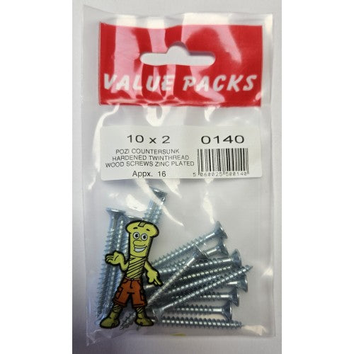 Fast Pak 10 X 2'' POZI CSK HARDENED TWINTHREAD WOODSCREWS ZINC
