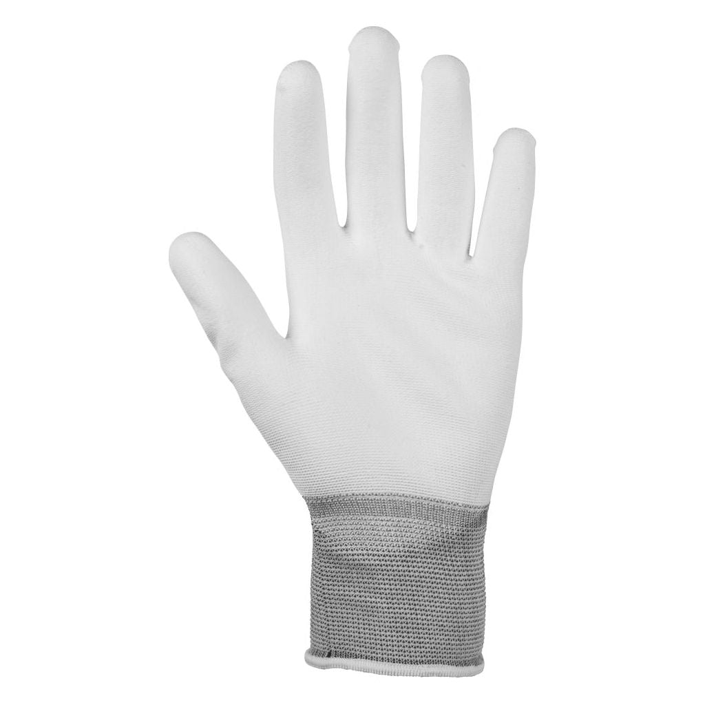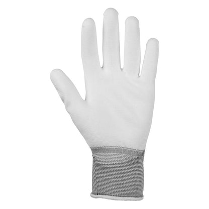 The Glenwear White PU Gloves are designed for delicate handling, precision work, and superior grip, making them ideal for assembly, electronics, light manufacturing, and general handling tasks. Featuring a polyurethane (PU) coating on the palm and fingertips, these gloves provide enhanced durability, dexterity, and grip while maintaining a lightweight and breathable feel. The seamless 13-gauge knitted nylon liner and elasticated wrist ensure a comfortable, irritation-free fit, even during extended use.