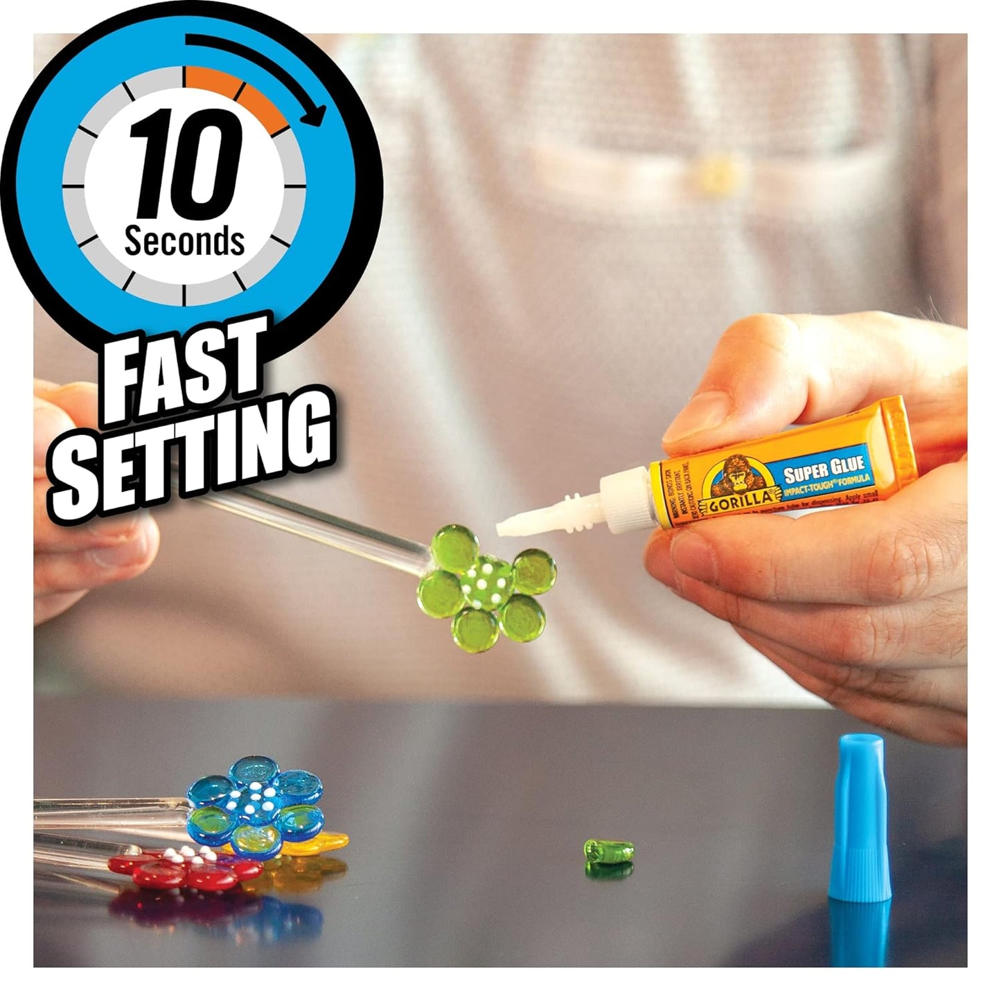 Gorilla Super Glue Tube is designed for quick and reliable repairs with its fast-setting and impact-resistant formula. It dries in just 10 to 45 seconds, forming an incredibly strong and durable bond that stands up to everyday use. This versatile adhesive works on a wide range of materials, including plastic*, metal, wood, ceramic, paper, rubber, and more, making it an essential addition to any toolbox or craft kit.
