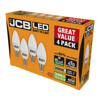 The CB Candle SES 3000k E14 Warm White 6W Pack of 4 provides energy-efficient lighting with a warm white glow, ideal for a variety of indoor lighting applications. These non-dimmable candles serve as a direct replacement for traditional 40W incandescent bulbs, offering 470 lumens of bright, warm light while using only 6W of power. Designed for use with SES (Small Edison Screw) fittings, these bulbs are perfect for chandeliers, ceiling fixtures, and more.