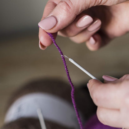 Each needle is equipped with a flexible monofilament loop eye, making it incredibly easy to thread thicker or more textured yarns. The soft loop reduces the risk of splitting fibres and helps maintain the integrity of your stitches.