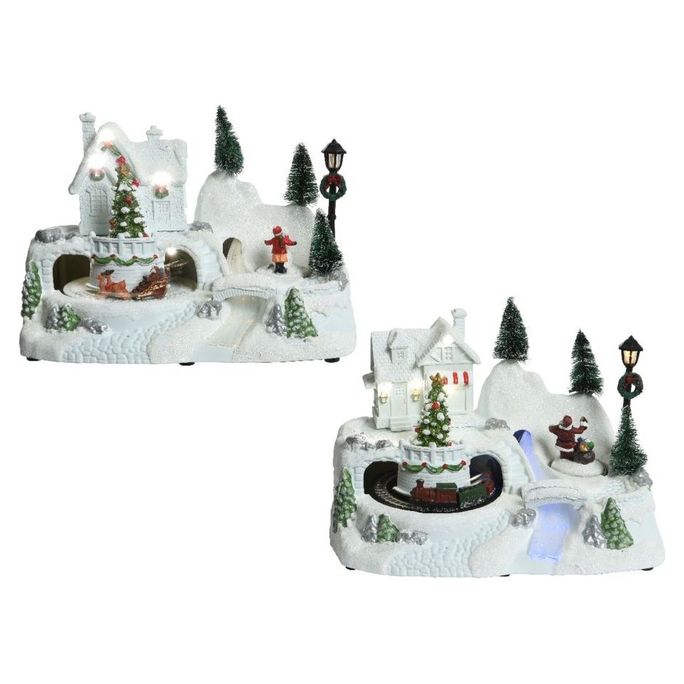 Lumineo Musical Led Christmas Village Scene With Reindeer And Sledge Going Round Beautiful Snowy Outdoor Scene