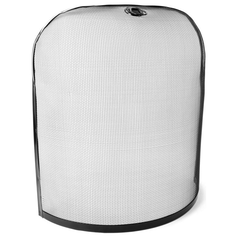 Constructed from durable, heat-resistant metal with fine black mesh to contain sparks while allowing warmth and visibility. -