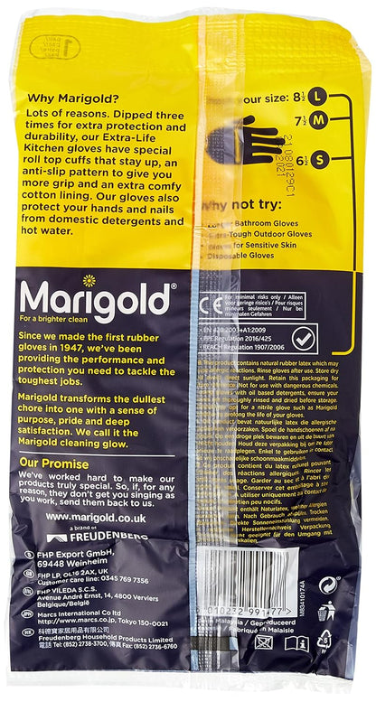Experience trusted protection and performance with Marigold Kitchen Gloves, Britain’s number one best-selling household gloves. Designed for durability, grip, and comfort, Marigold gloves are ideal for washing up, cleaning, and household tasks. These iconic yellow gloves are triple-layered for long-lasting protection and equipped with roll-top cuffs to help them stay up and prevent water seepage.