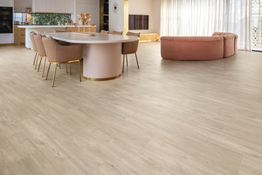 This flooring is 100% waterproof and compatible with underfloor heating, making it a great solution for kitchens, bathrooms, and busy living spaces.