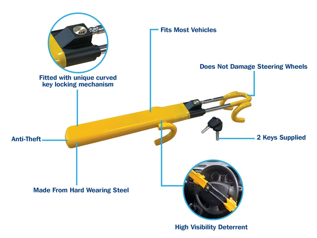 Heavy-Duty Anti-Theft Vehicle Security Device – Highly Visible Deterrent with Cross Key Mechanism