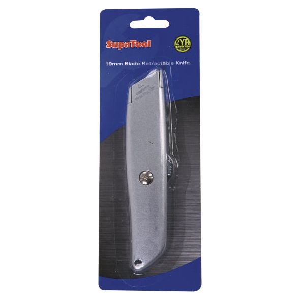 The SupaTool Retractable Knife 19mm Blade is a robust and practical cutting tool designed for precision and durability. Featuring a metal construction, this knife is ideal for various cutting tasks, whether you're working with cardboard, plastic, or other materials. Its retractable blade adds an extra layer of safety, allowing the user to extend the blade only when needed and retract it after use to prevent accidents. The knife is compact yet sturdy, making it a must-have tool for both professionals and DIY enthusiasts.