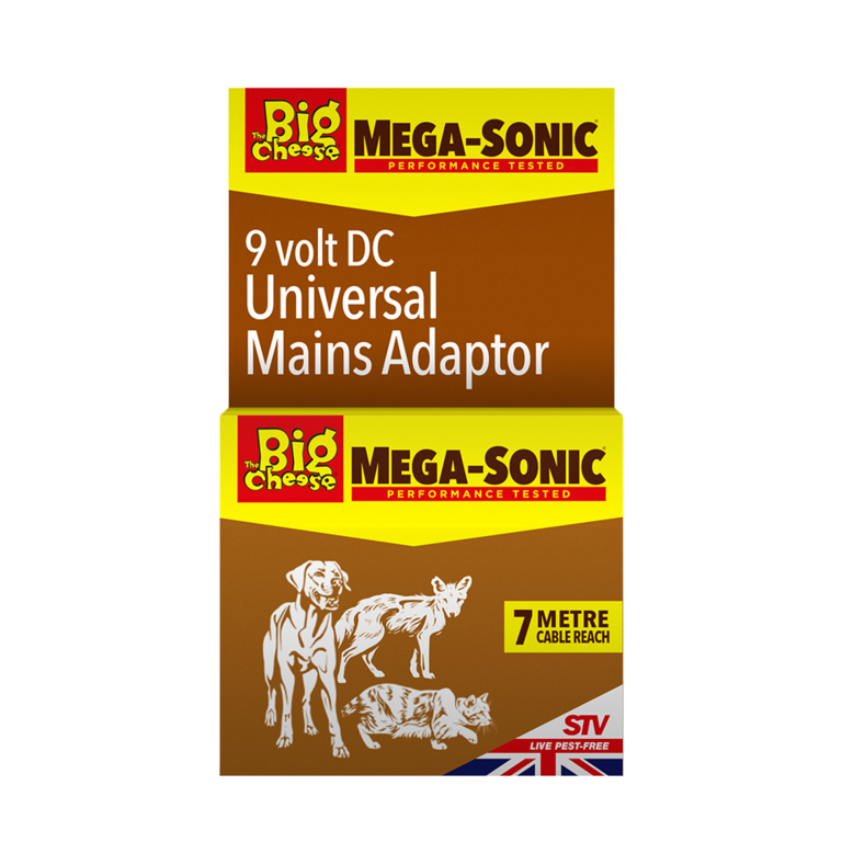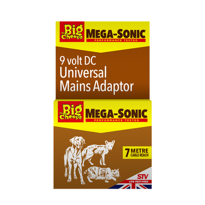 The Big Cheese Universal 9v Mains Adapter + 5M Extension is a reliable and convenient accessory designed to power your Mega-Sonic repeller products with ease. With a boxed weight of 220g, this 9v DC adapter comes equipped with a 5-metre extension cable, offering a fixed electrical supply for uninterrupted operation. Specifically compatible with the STV606 Mega Sonic Cat Repeller, STV610 Mega Sonic Cat Repeller, and STV620 Mega Sonic Cat & Dog Repeller, it converts these battery-operated devices into mains-powered units, ensuring continuous performance for deterring cats, dogs, and other nuisance animals in your garden or outdoor spaces.