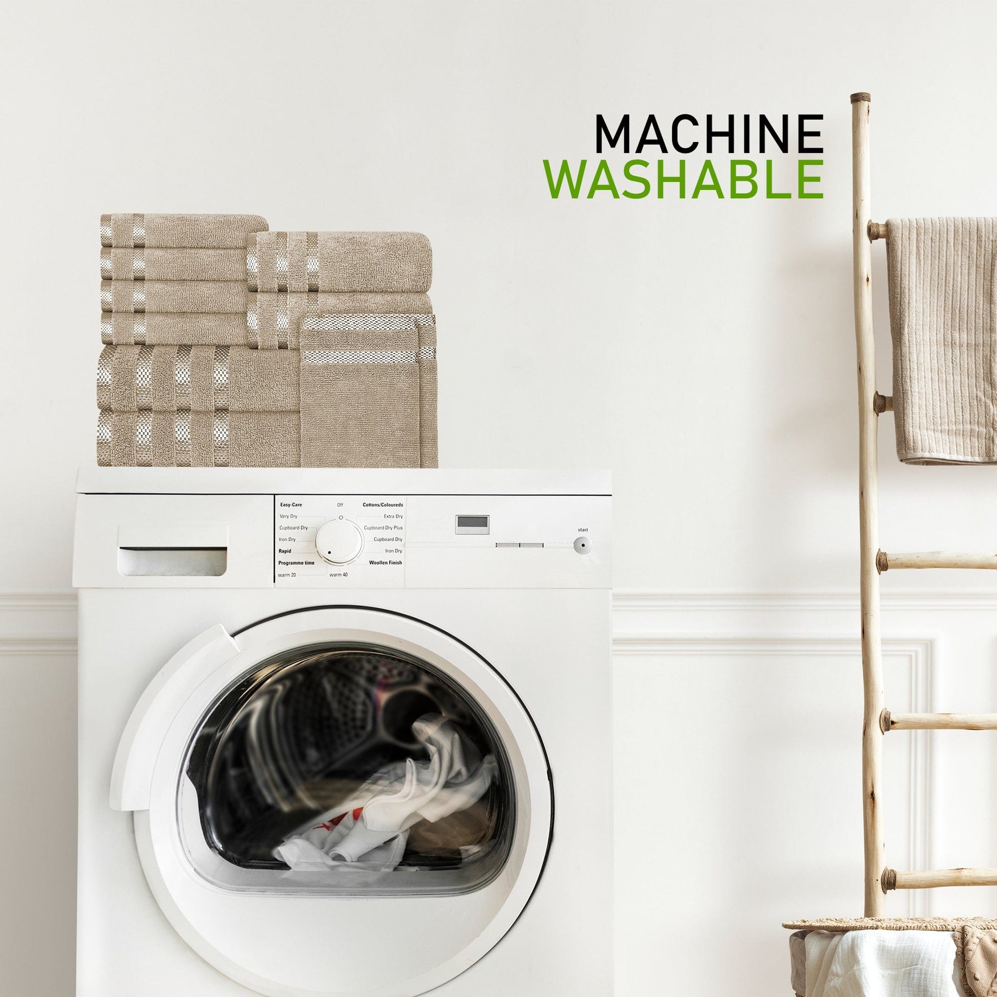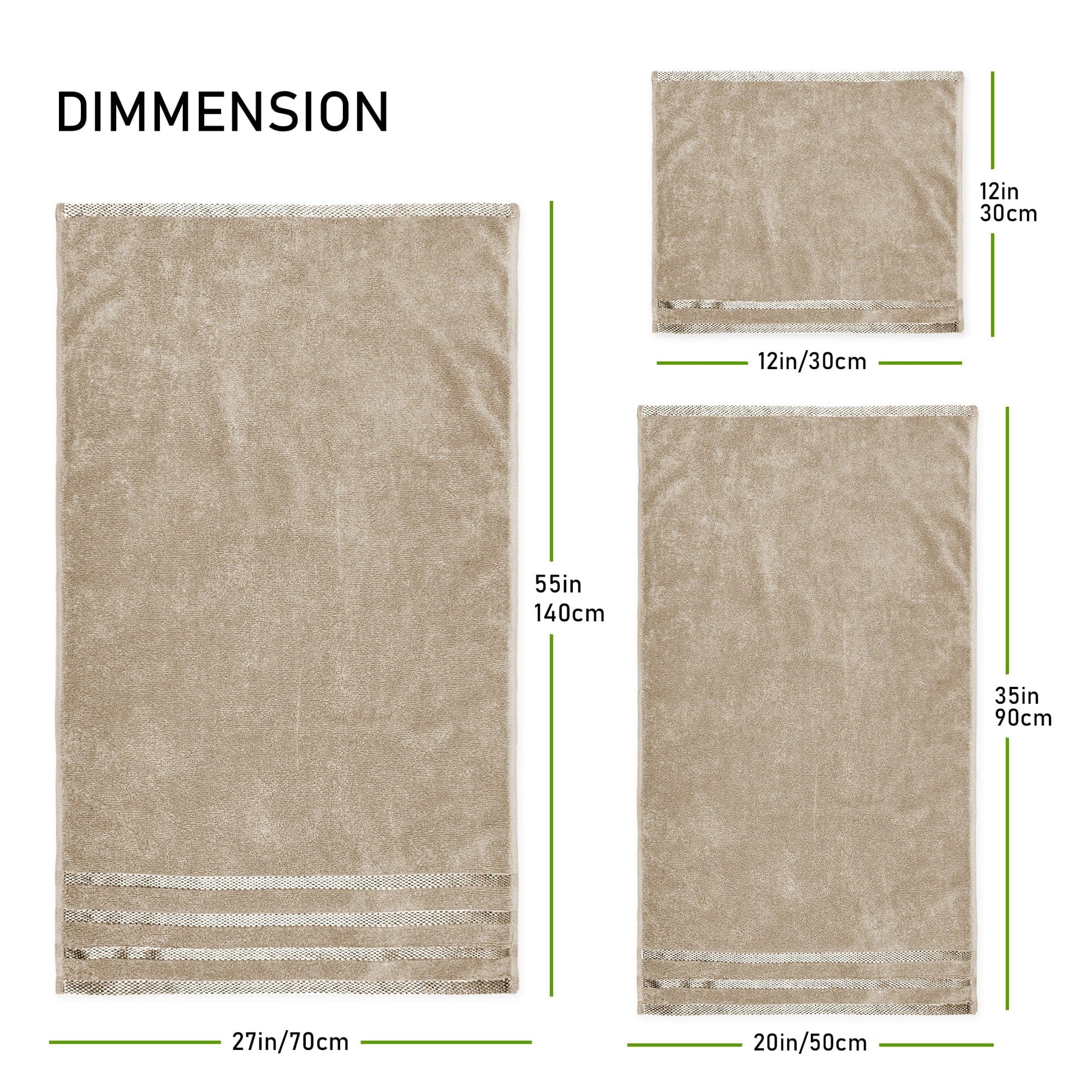 Belmont Viscose Stripe Beige Towels 100% Cotton Hotel Quality Super Absorbent 10 Piece Bale Set, 4 Hand Towel & 12 Face Cloths by OLIVIA ROCCO
