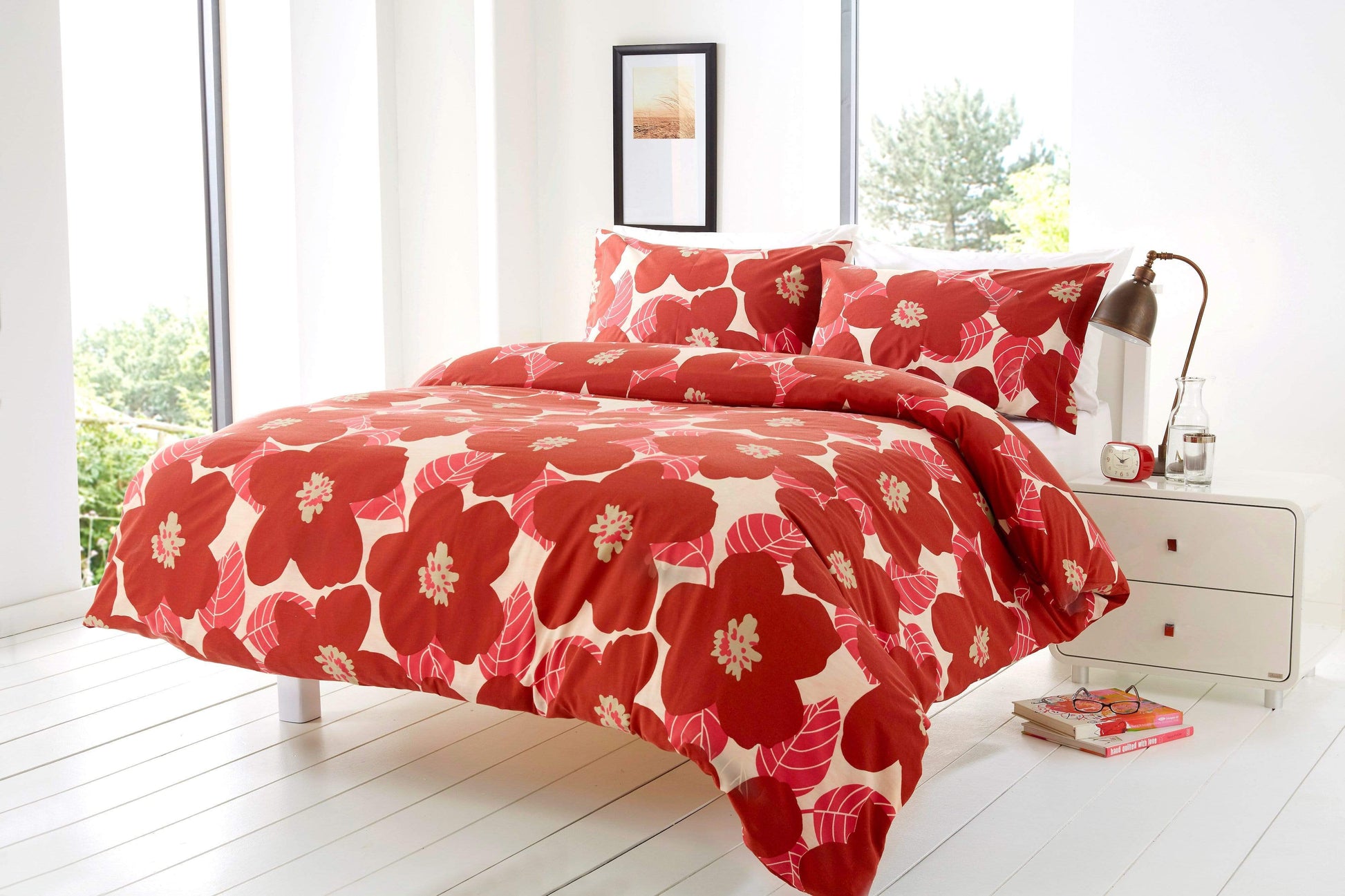 The Bloomsbury Duvet Set is available in vibrant bold colours that highlight the floral poppy design, adding a touch of elegance and charm to your bedroom decor.